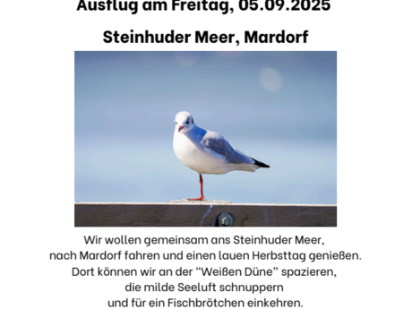 Am 05.09.25 findet ein Ausflug nach Mardorf zum Steinhuder Meer statt.