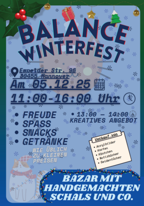 Am 05.12.25 lädt Sie die Tagesstätte Badenstedt von 11:00 Uhr bis 16:00 Uhr zum Winterfest ein.
